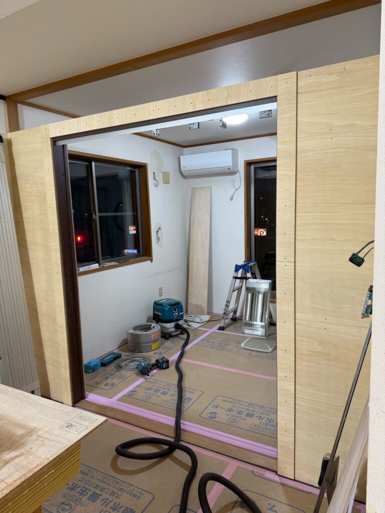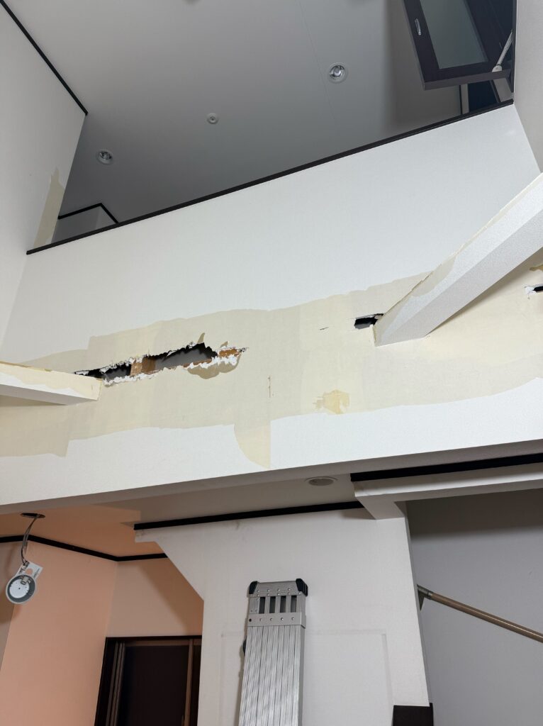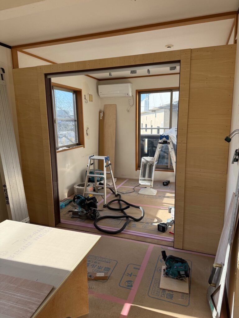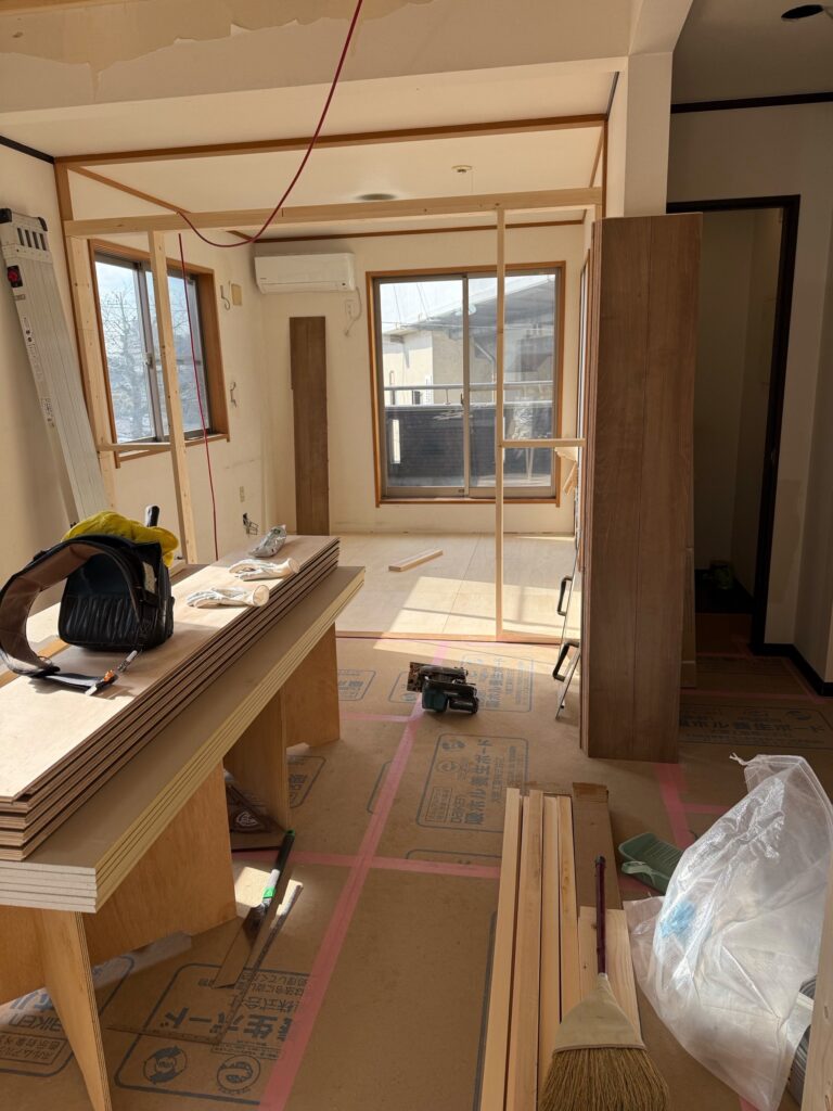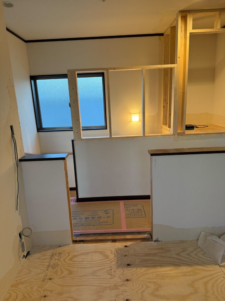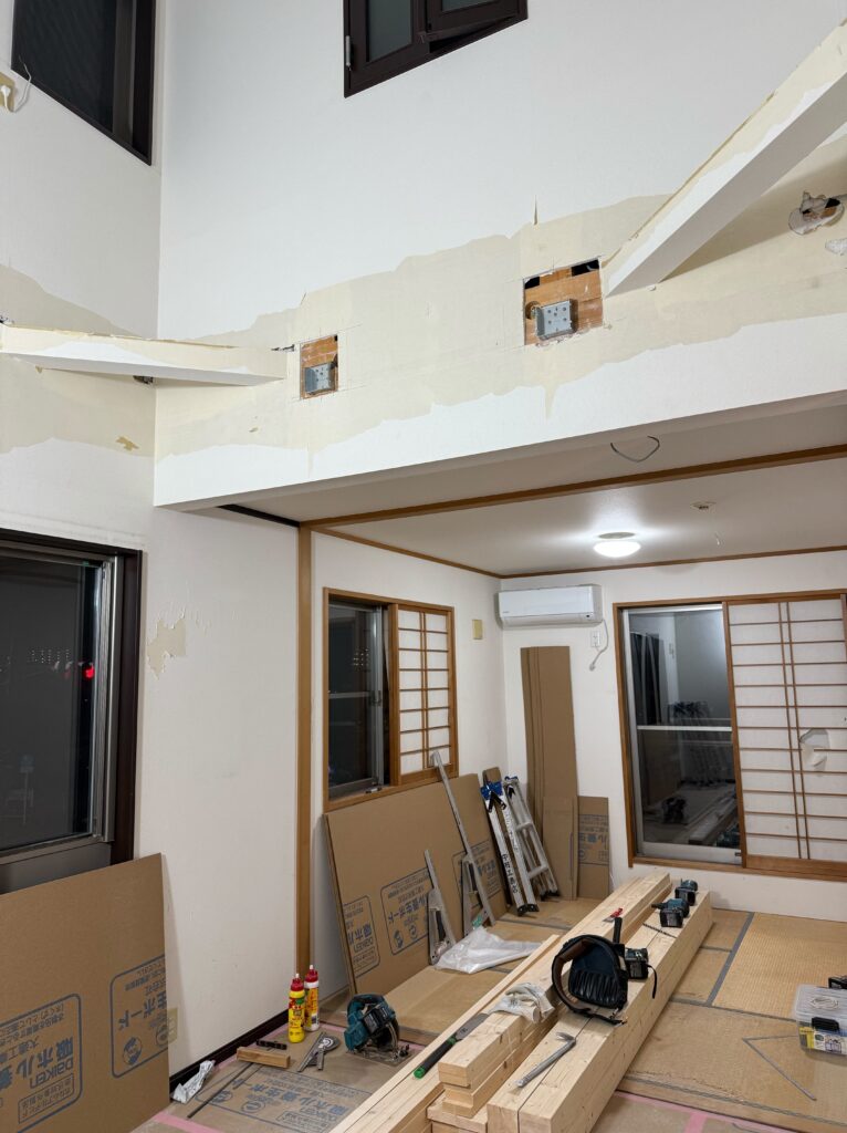 ギャラリー GALLERY ホーム ギャラリー 【さいたま市 M様邸】 猫カフェ改修工事 2026.02.23 【さいたま市 M様邸】 猫カフェ改修工事 吹き抜け部分に床をはり部屋を作りました。 下から見上げた吹き抜け空間 上の階から見下ろした吹き抜け空間 大きな梁を渡す作業 金具をふんだんに施工 吹き抜けを完全に塞ぎました 廊下と吹き抜け部分の仕切りを開口 吹き抜けだった場所に部屋が完成 階段の上部デッドスペースに物入を作り有効活用 階段の上部に物入れを施工 更に猫が落ちないように壁を高く立ち上げました。 和室だった部屋もフローリングの洋室に改修工事 既存和室の入口は大開口の襖が無いタイプ 間仕切りドアを付ける為、袖壁を新たに施工 入口上部は通気・空調効果・換気の為にあえて開口 猫やお客様の入室の確認が出来るように曇りガラスを採用 外改修工事の施工写真 敷地内に大きな樹木と腰高の雑草が生い茂っていました。これらを全て伐採 足場掛け ホコリや排気で汚れた車庫を高圧洗浄して塗装で綺麗に仕上げ 地中に埋まっていた大量の根っこを全て掘起こし処分しました。 除草剤散布・防草シート・砕石を敷きました。 正面道路側に長手の看板を設置 日暮れからライトアップ 2種類の看板を設置しました。 玄関袖壁に掲示板ポストを設置 足元の黒ずんだタイルもクリーニングで見違えるほど綺麗になりました。 水回り工事 既存のサイズよりひと周り小さいサイズのユニットバスを施工 浴室を小さくして余ったスペースは会議テーブルや折りたたみ椅子を入れる物入を施工 1階トイレ交換工事 2階トイレ交換工事 上部に枕棚 洗面所側の壁を塞ぎ玄関側に新たに間口開口をして来店時用の洗面台を設置 玄関にお客様来店時用の洗面台設置 2階入り口にも洗面台を設置 棚板と受金具をあえてビスで固定し棚の横揺れ防止対策 可動棚を多めに設置高さを変更する時に受金具と棚がグラつかないようにビスで一体化しました。 その他工事画像集 キッチンはコンロと蛇口交換 リビングとキッチンを間じきるドア エアコン室外機の風向板を設置 防犯カメラを設置 2段式の猫用トイレ 既存の窓を塞ぐ工事 外から見ても分からないように化粧板で目隠し 原状回復が出来るように既存窓はそのままにして施工 クロスで仕上げてリビングの壁はプロジェクターで画像投影が出来るようになりました。 施主様が設置したプロジェクター付照明器具 パナソニック 7型ワイドの高機能インターホン 玄関子機も既存よりワイドです 森の中にいるような雰囲気のロールスクリーン 気持ちが落ち着くシンプルな色合い 夕暮れのような温かみのあるロールスクリーン 階段上の物入は両開き観音ドア 大建工業の猫が出入りできる既製品ドア 2階入り口はアウトセットのオートクルーザー付きドア 一覧へ戻る