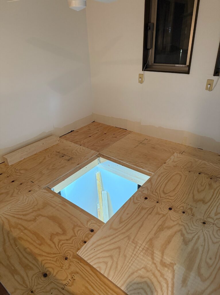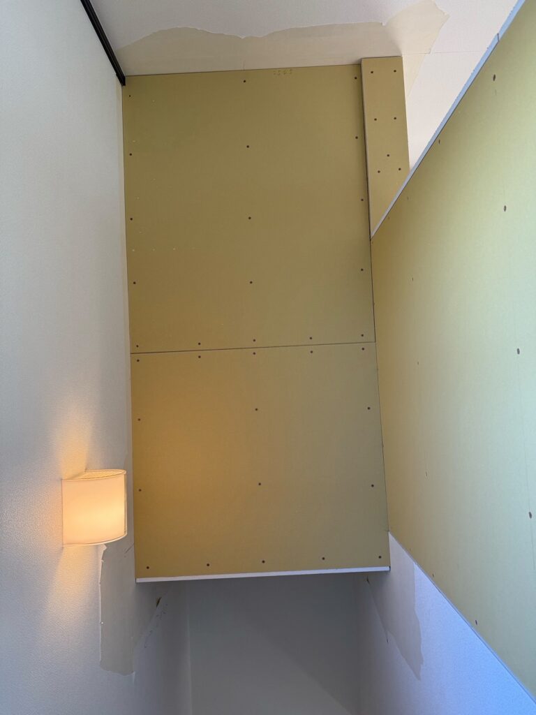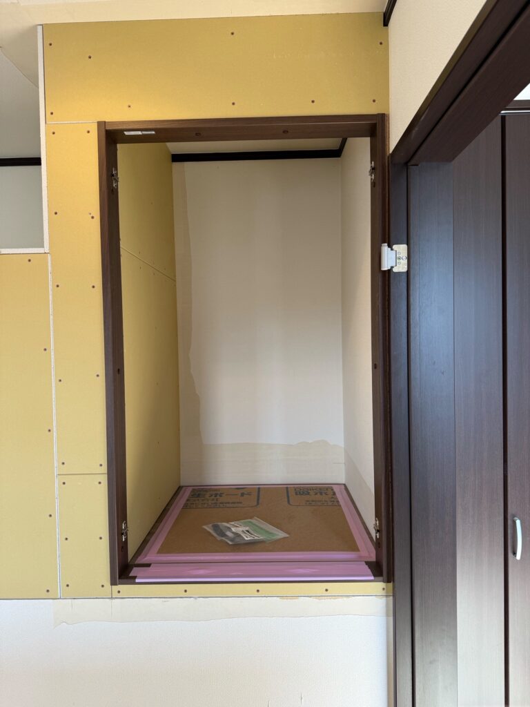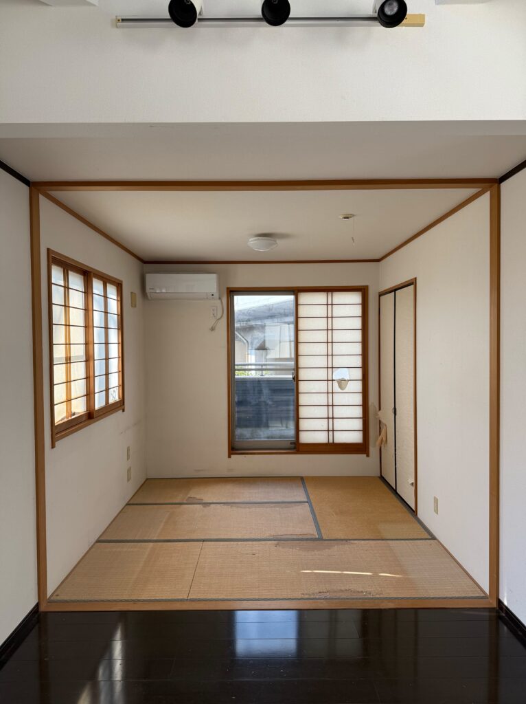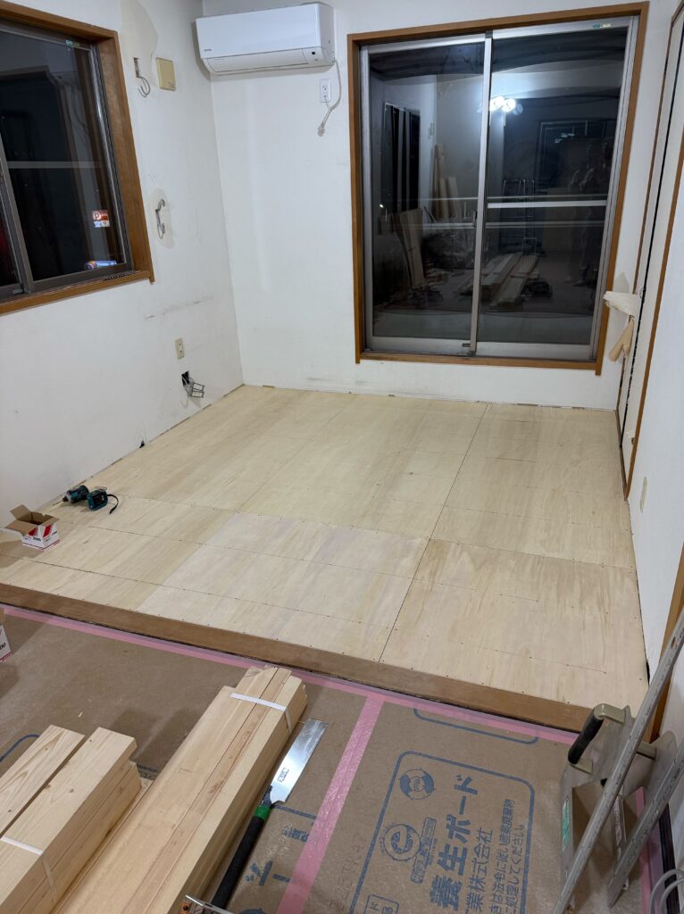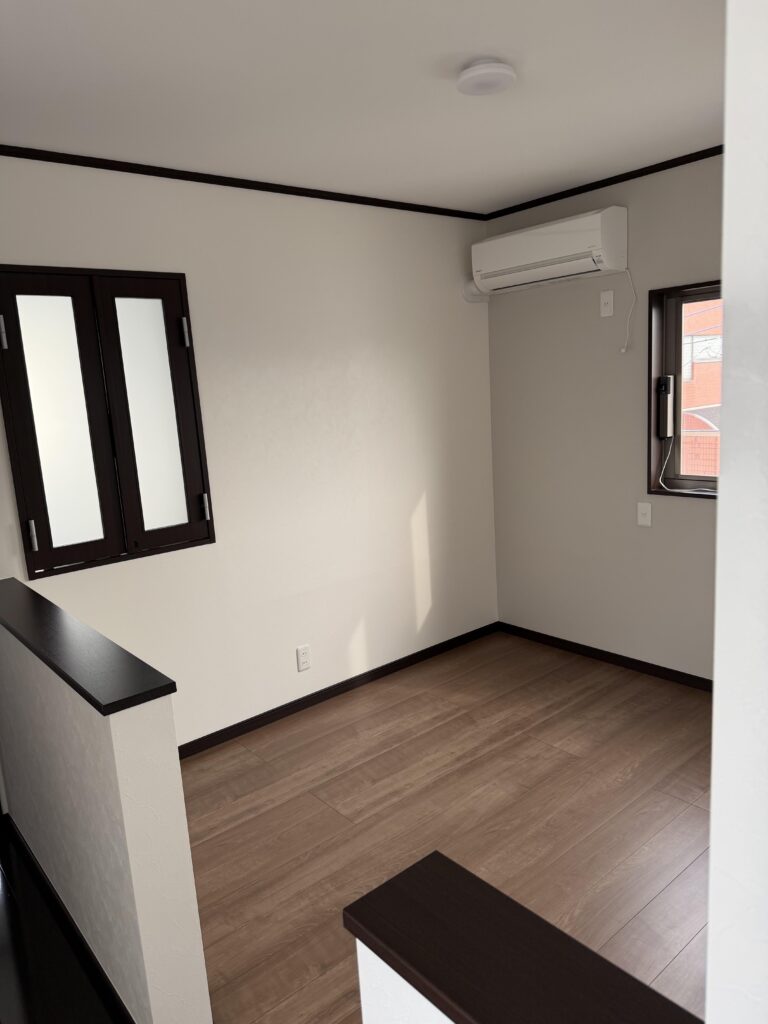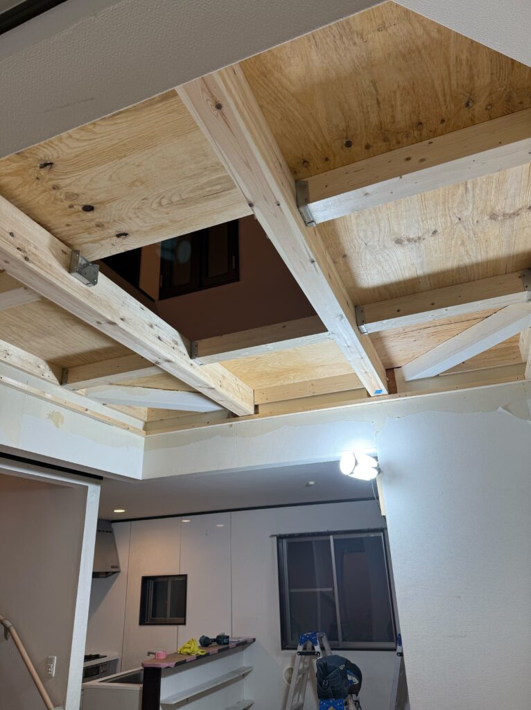 ギャラリー GALLERY ホーム ギャラリー 【さいたま市 M様邸】 猫カフェ改修工事 2026.02.23 【さいたま市 M様邸】 猫カフェ改修工事 吹き抜け部分に床をはり部屋を作りました。 下から見上げた吹き抜け空間 上の階から見下ろした吹き抜け空間 大きな梁を渡す作業 金具をふんだんに施工 吹き抜けを完全に塞ぎました 廊下と吹き抜け部分の仕切りを開口 吹き抜けだった場所に部屋が完成 階段の上部デッドスペースに物入を作り有効活用 階段の上部に物入れを施工 更に猫が落ちないように壁を高く立ち上げました。 和室だった部屋もフローリングの洋室に改修工事 既存和室の入口は大開口の襖が無いタイプ 間仕切りドアを付ける為、袖壁を新たに施工 入口上部は通気・空調効果・換気の為にあえて開口 猫やお客様の入室の確認が出来るように曇りガラスを採用 外改修工事の施工写真 敷地内に大きな樹木と腰高の雑草が生い茂っていました。これらを全て伐採 足場掛け ホコリや排気で汚れた車庫を高圧洗浄して塗装で綺麗に仕上げ 地中に埋まっていた大量の根っこを全て掘起こし処分しました。 除草剤散布・防草シート・砕石を敷きました。 正面道路側に長手の看板を設置 日暮れからライトアップ 2種類の看板を設置しました。 玄関袖壁に掲示板ポストを設置 足元の黒ずんだタイルもクリーニングで見違えるほど綺麗になりました。 水回り工事 既存のサイズよりひと周り小さいサイズのユニットバスを施工 浴室を小さくして余ったスペースは会議テーブルや折りたたみ椅子を入れる物入を施工 1階トイレ交換工事 2階トイレ交換工事 上部に枕棚 洗面所側の壁を塞ぎ玄関側に新たに間口開口をして来店時用の洗面台を設置 玄関にお客様来店時用の洗面台設置 2階入り口にも洗面台を設置 棚板と受金具をあえてビスで固定し棚の横揺れ防止対策 可動棚を多めに設置高さを変更する時に受金具と棚がグラつかないようにビスで一体化しました。 その他工事画像集 キッチンはコンロと蛇口交換 リビングとキッチンを間じきるドア エアコン室外機の風向板を設置 防犯カメラを設置 2段式の猫用トイレ 既存の窓を塞ぐ工事 外から見ても分からないように化粧板で目隠し 原状回復が出来るように既存窓はそのままにして施工 クロスで仕上げてリビングの壁はプロジェクターで画像投影が出来るようになりました。 施主様が設置したプロジェクター付照明器具 パナソニック 7型ワイドの高機能インターホン 玄関子機も既存よりワイドです 森の中にいるような雰囲気のロールスクリーン 気持ちが落ち着くシンプルな色合い 夕暮れのような温かみのあるロールスクリーン 階段上の物入は両開き観音ドア 大建工業の猫が出入りできる既製品ドア 2階入り口はアウトセットのオートクルーザー付きドア 一覧へ戻る