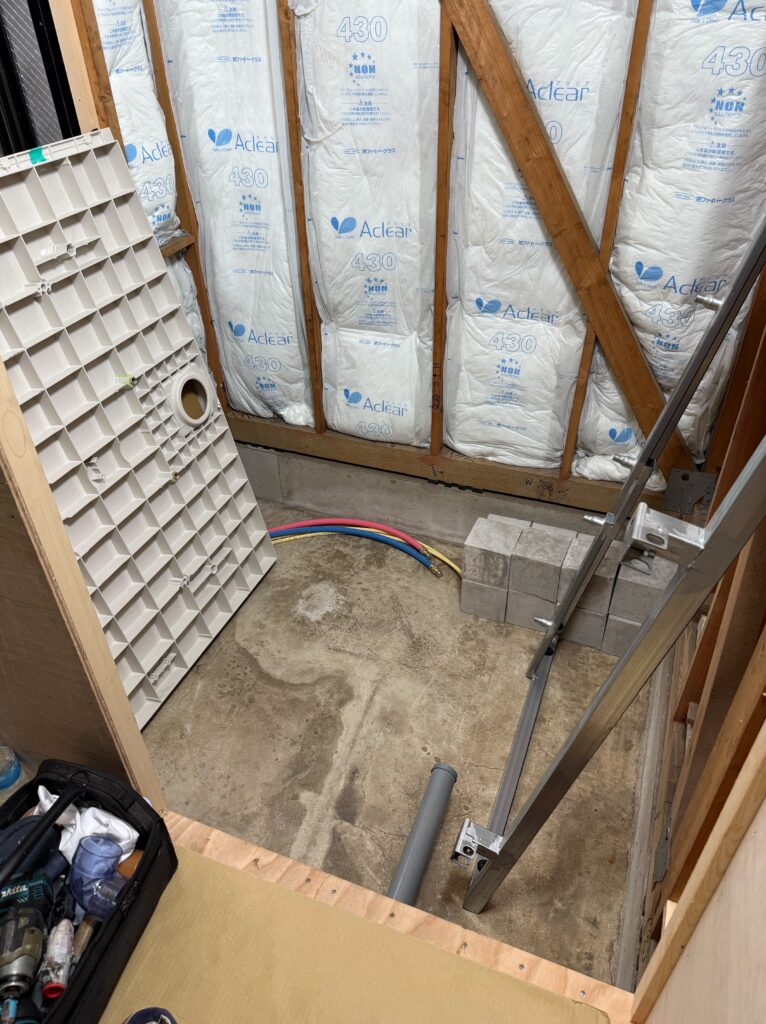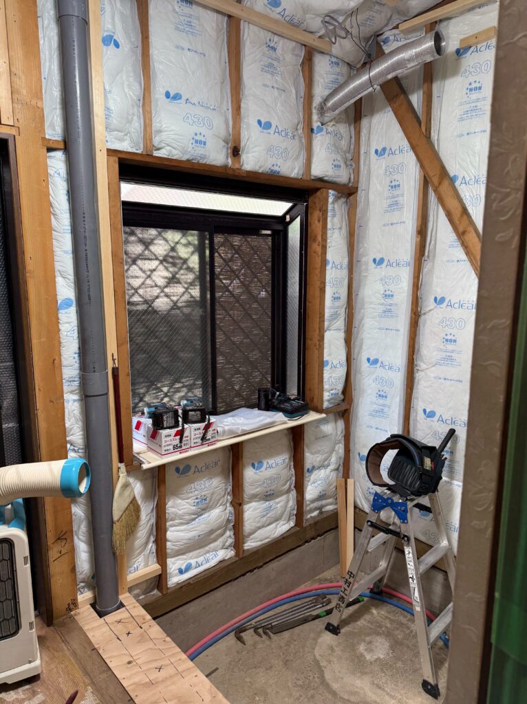 ギャラリー GALLERY ホーム ギャラリー 【新座市 K様邸】 洗面所・お風呂改修工事 2025.09.25 【新座市 K様邸】 洗面所・お風呂改修工事 動かせないとされた2階のトイレの排水管を移動して、洗面所の有効スペースを拡大 既存のお風呂には断熱材が入っていなかったので、天井・壁にしっかり断熱材処理を致しました。 壁はマグネット対応風呂フタを引っかけるフックもマグネットタイプなので取り外し可能 出窓カウンターは既存を活かし、内窓を設置 浴室と洗面所の間仕切り壁を薄壁にて施工本来よりも洗面所を30cm幅を広げることが出来ました。 センサーで自動水栓 お湯も出せるタイプの洗濯機用水栓を設置 一覧へ戻る