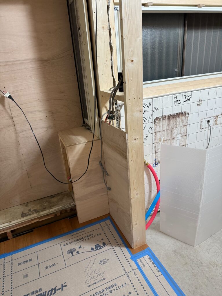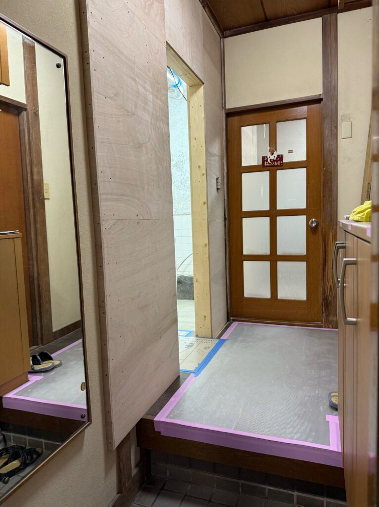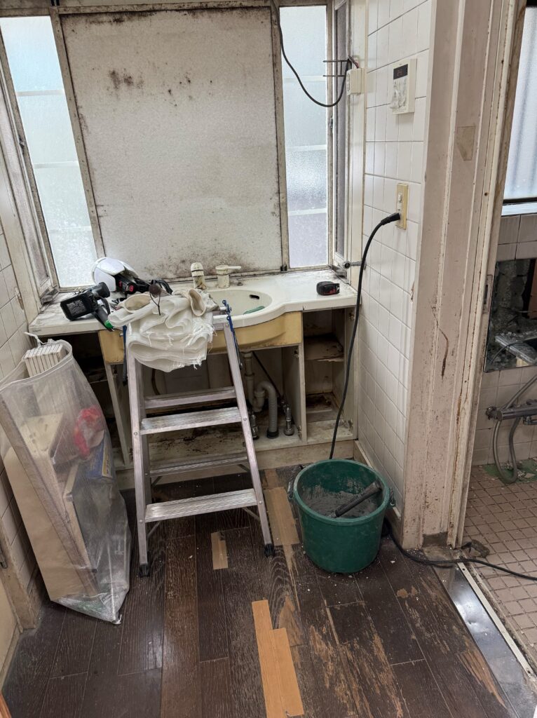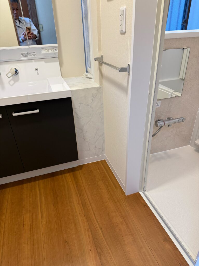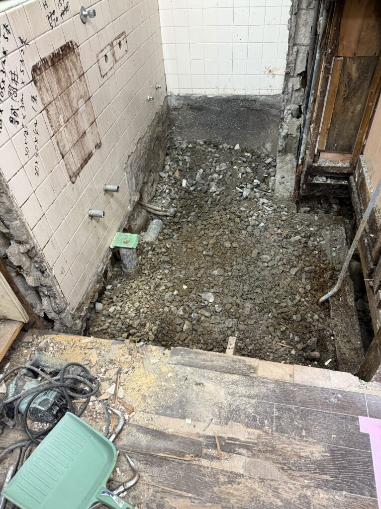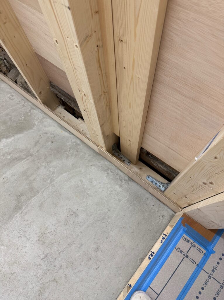 ギャラリー GALLERY ホーム ギャラリー 【練馬区 H様邸】洗面所・お風呂改修工事 2025.11.12 【練馬区 H様邸】洗面所・お風呂改修工事 2階のトイレ配管から水漏れ 壁や柱、断熱材にも水が回り異臭とカビが発生 腐った柱や土台を交換 浴室にコンクリートを流しました。 耐震金物で補強 耐震金物を施工 リビング側の壁を改修 リビング壁改修後にエアコンの交換工事 容量の小さかった分電盤も今回交換しました。 洗面所入口はクローザー付きの引戸アウトセットを設置 一覧へ戻る
