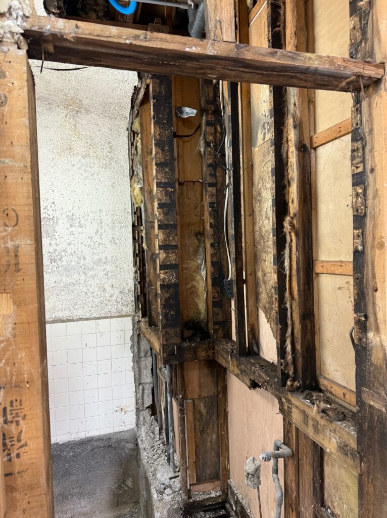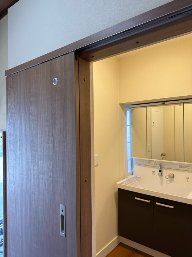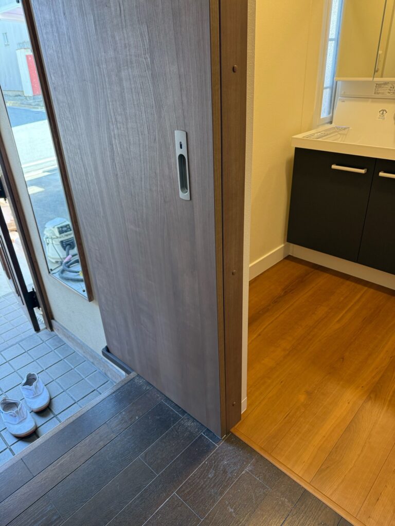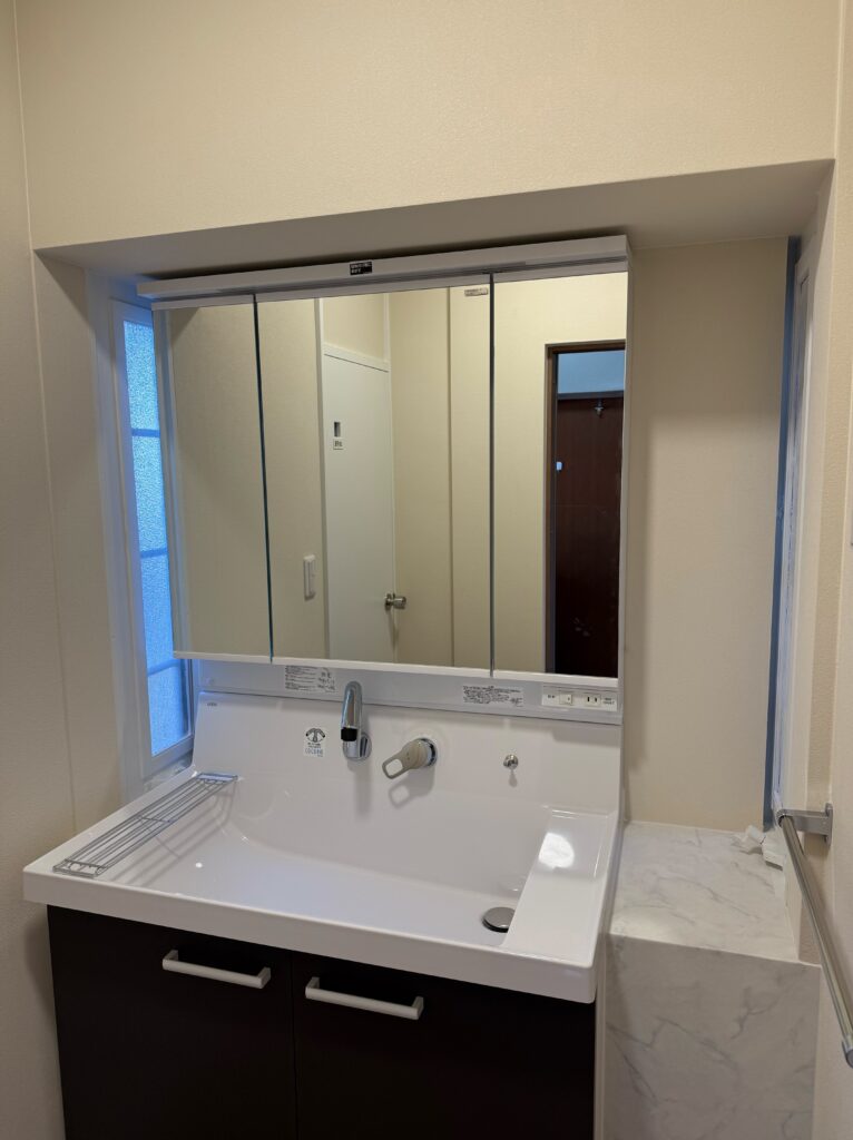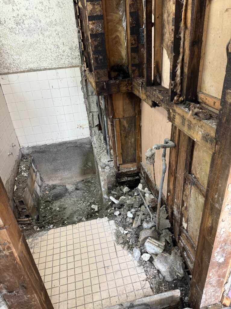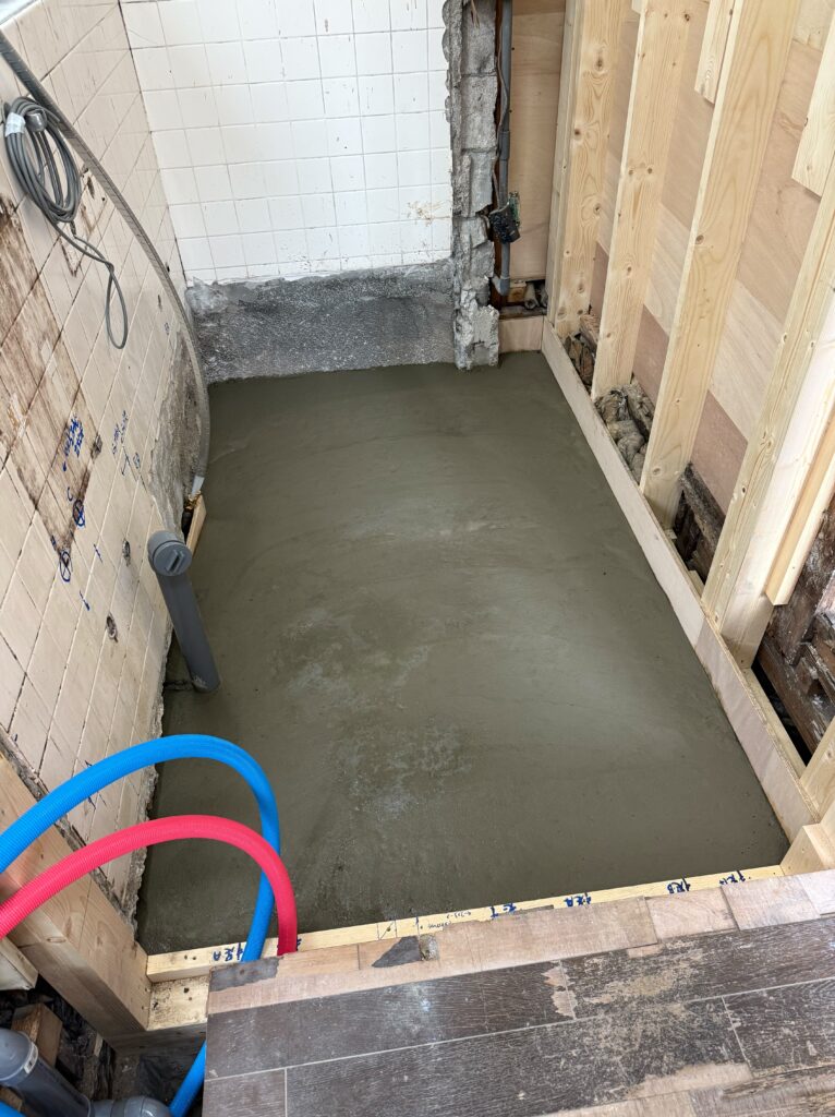 ギャラリー GALLERY ホーム ギャラリー 【練馬区 H様邸】洗面所・お風呂改修工事 2025.11.12 【練馬区 H様邸】洗面所・お風呂改修工事 2階のトイレ配管から水漏れ 壁や柱、断熱材にも水が回り異臭とカビが発生 腐った柱や土台を交換 浴室にコンクリートを流しました。 耐震金物で補強 耐震金物を施工 リビング側の壁を改修 リビング壁改修後にエアコンの交換工事 容量の小さかった分電盤も今回交換しました。 洗面所入口はクローザー付きの引戸アウトセットを設置 一覧へ戻る
