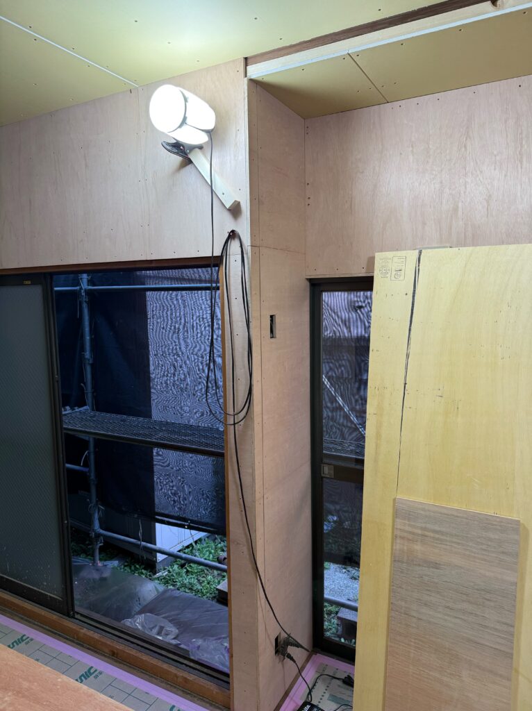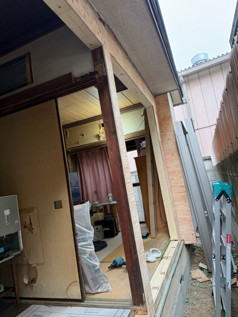 ギャラリー GALLERY ホーム ギャラリー 【練馬区 H様邸】 2期 外改修工事・室内改修工事 2026.04.22 【練馬区 H様邸】 2期 外改修工事・室内改修工事 外改修工事の画像 足場の画像正面の中央に昇降階段とステージを設置 足場設置の作業風景 正面に突出しの昇降階段設置 掃き出しの枠と柱を補強 経年劣化で錆び腐食が進行 下地処理と補強作業 全面に防水シートを隙間なくしっかり施工する事で雨漏れの心配は無くなります 玄関ドアの交換時に斫ったタイル部分を新たに同系色のタイルで施工 最新の電子錠付き玄関ドア 室内改修工事の画像 壁の一部を淡いピンクのアクセントクロスで仕上げました ハンガーパイプと枕棚を設置 統一感のある色でお部屋が仕上がりました。 床を縦張りにすることで開放感のある奥行きが出ます 玄関内側の電子錠親機 一覧へ戻る