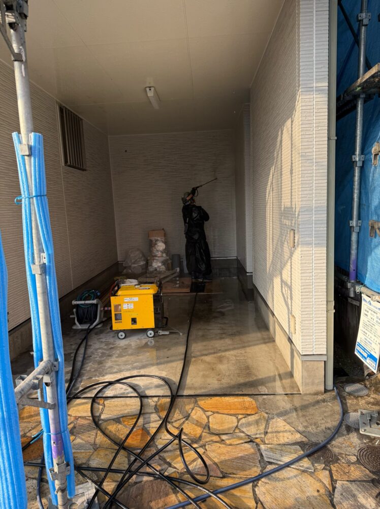 まずは高圧洗浄で丁寧に蓄積汚れを落として行きます。