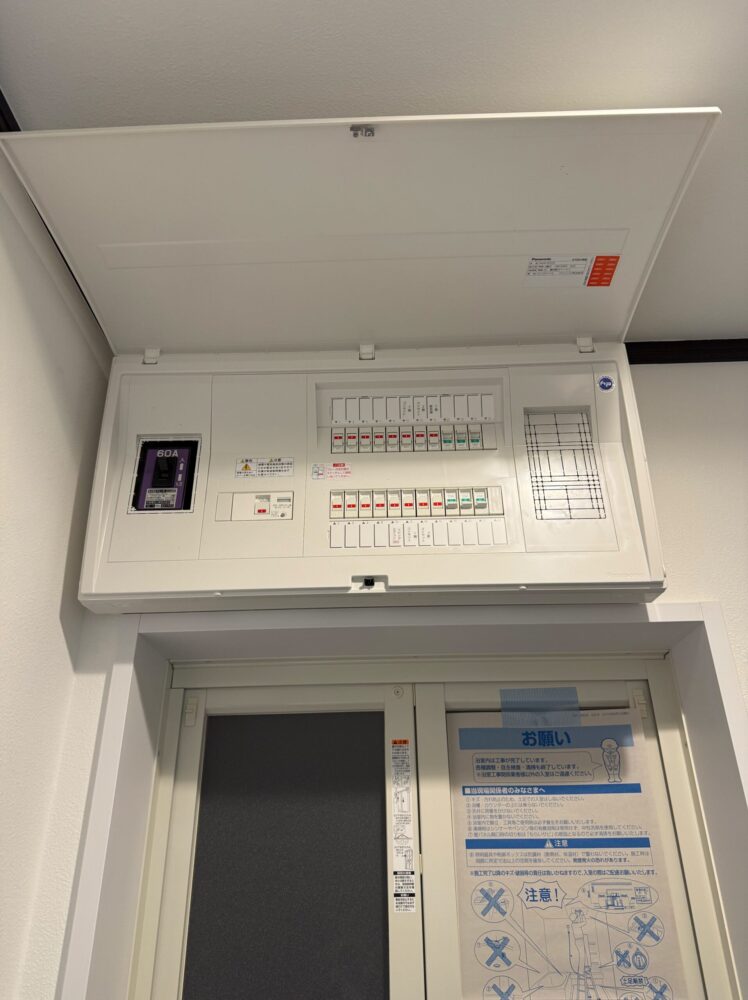 付帯設備品の設置に影響が出る為、今回の工事で大型の分電盤に交換をしました。