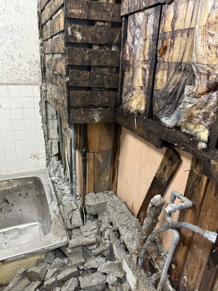 漏れ出た場所のみならず、水は配管や柱などをつたって思わぬ方向にも被害をもたらします。