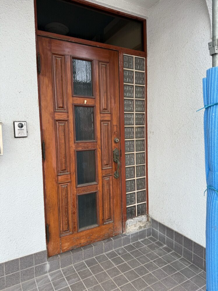 既存の玄関は木製で、ドアの上には明り取りのガラスがあり
